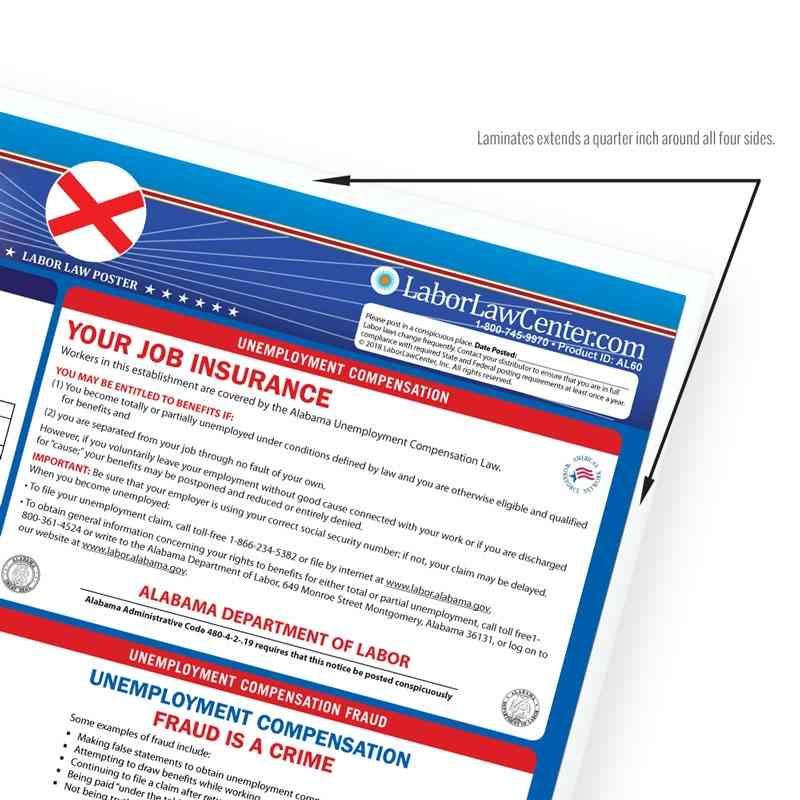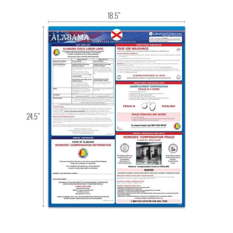 Looking for a single poster that includes all mandatory regulations? Consider our Alabama Complete Labor Law Poster. This oversized poster includes all state, federal, and OSHA requirements on single poster for $29.95. This poster is typically attractive to businesses that just want everything on one poster, rather than purchasing multiple posters to meet compliance requirements.