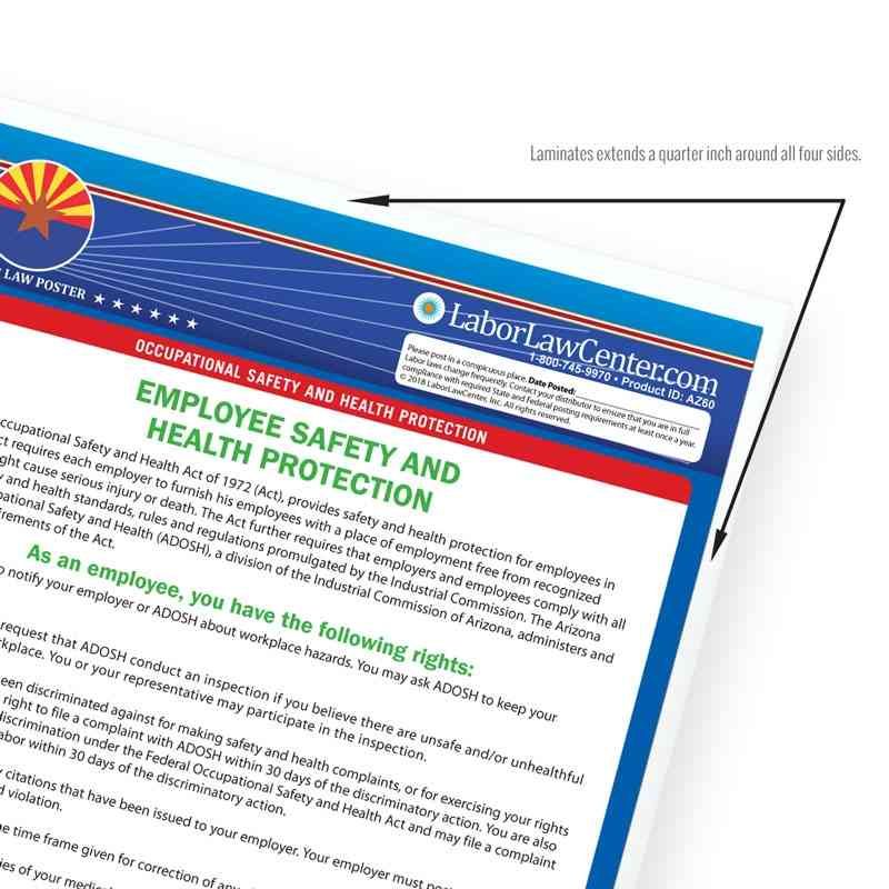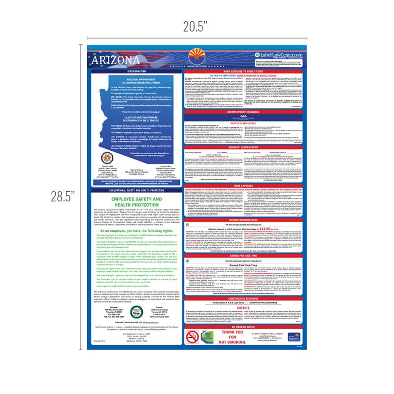 Looking for a single poster that includes all mandatory regulations? Consider our Arizona Complete Labor Law Poster. This oversized poster includes all state, federal, and OSHA requirements on single poster for $29.95. This poster is typically attractive to businesses that just want everything on one poster, rather than purchasing multiple posters to meet compliance requirements.