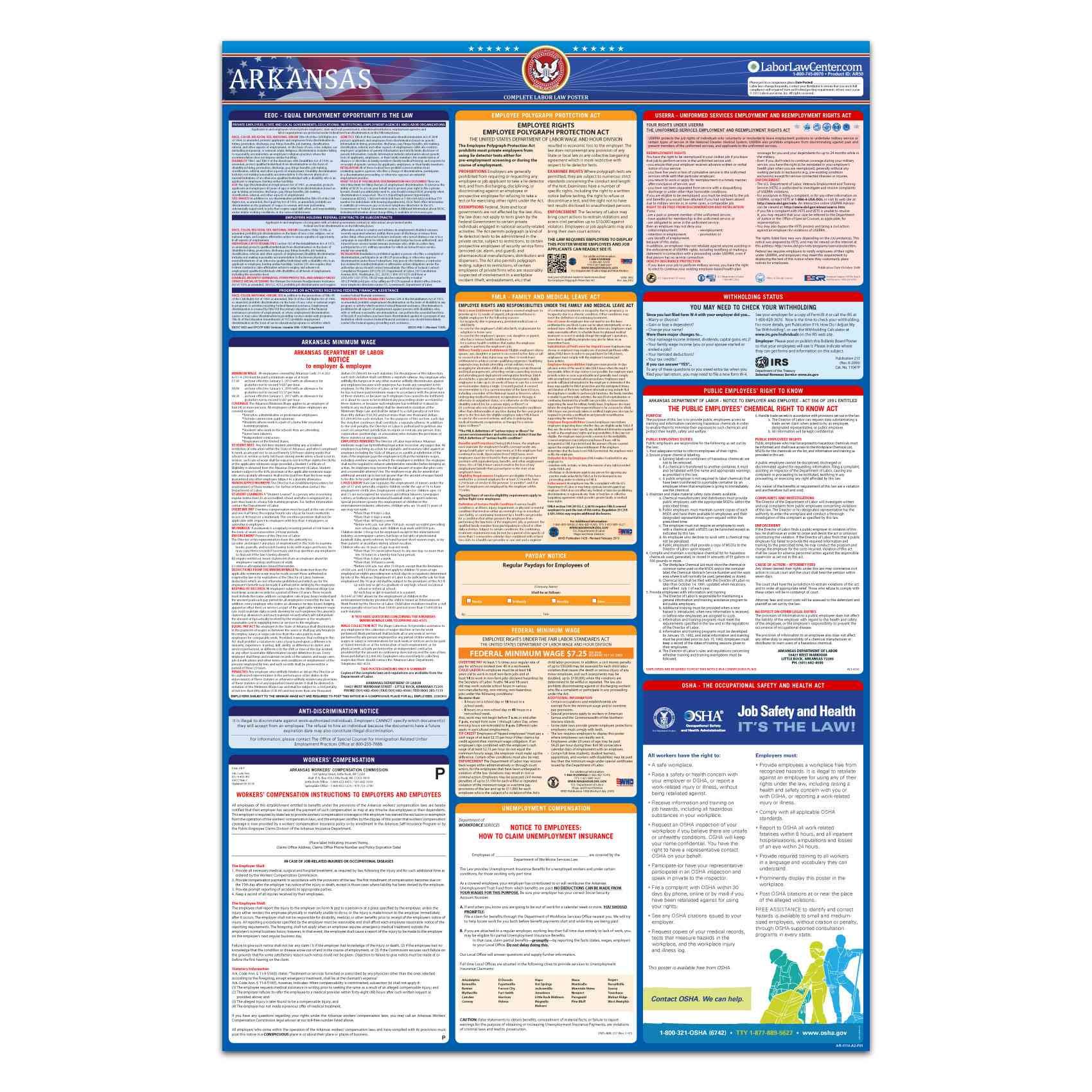Easily avoid citations with the Arkansas State and Federal Complete Poster by LaborLawCenter™. This all-in-one state and federal labor law poster satisfies all of your employment workplace posting requirements.