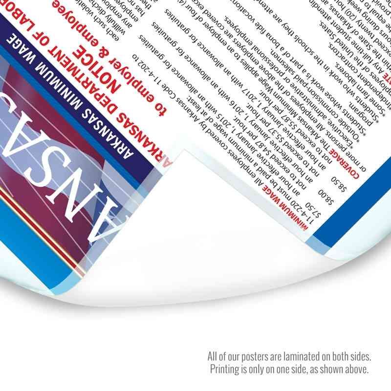 Did you know that both the state and federal government require you to display posters from BOTH levels of government? For your convenience and preference, we currently offer both formats to assist you with your compliance needs. Posters are typically purchased separately (state and federal) due to a business’ preference, or if size doesn't permit, a single State Only poster that may be larger. We are the industry’s leading company that can provide you with either option including: the Arkansas State Only Labor Law Poster, which includes all mandatory state requirements on a single poster for $21.95, and the mandatory Federal Poster for $12.95, which you can add to your order in the purchasing options above. Simply select the option that works best for you.