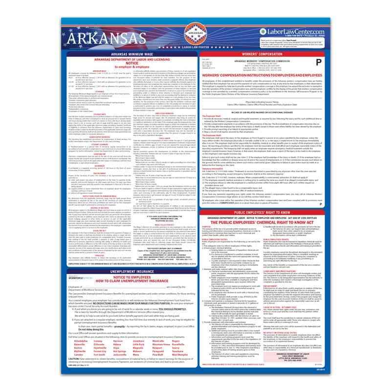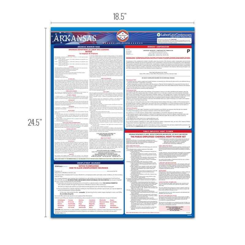 Looking for a single poster that includes all mandatory regulations? Consider our Arkansas Complete Labor Law Poster. This oversized poster includes all state, federal, and OSHA requirements on single poster for $29.95. This poster is typically attractive to businesses that just want everything on one poster, rather than purchasing multiple posters to meet compliance requirements.