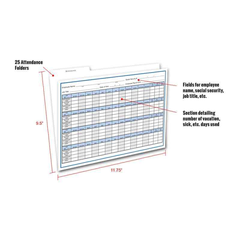 This durable attendance folder provides an easy mechanism for employers to stay organized with their attendance records for each employee by helping employers to organize records by tabs.