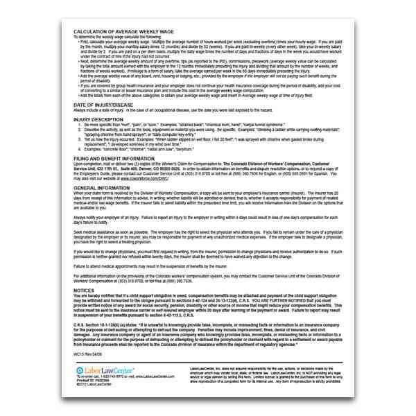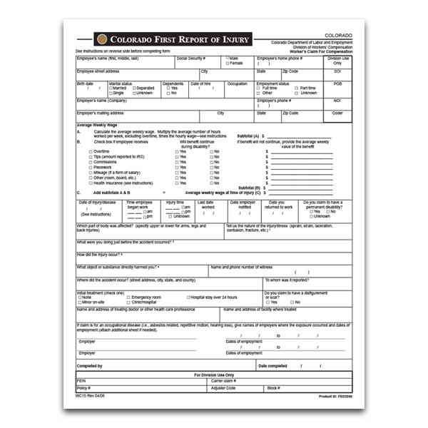 You can safely avoid these consequences and help promote a safe, smart workplace with our Colorado First Report of Injury Forms. Each form is a single 8.5 x 11 page, and covers all of the information that the CDLE needs to promptly receive. And since each package comes with 25 forms, you won't have to worry about running out – when supplies get low, simply order more.