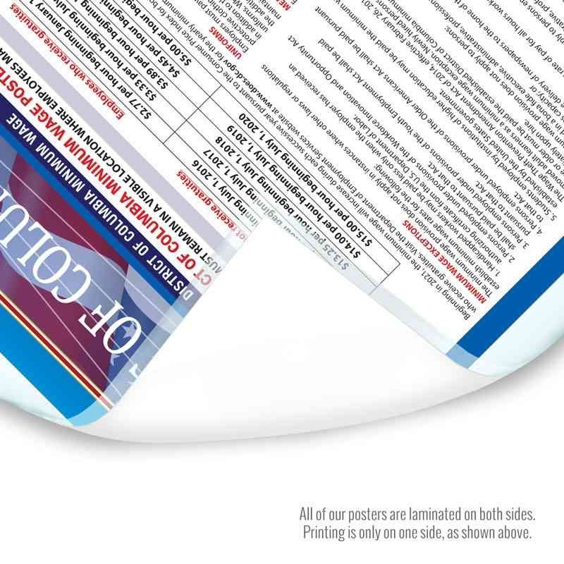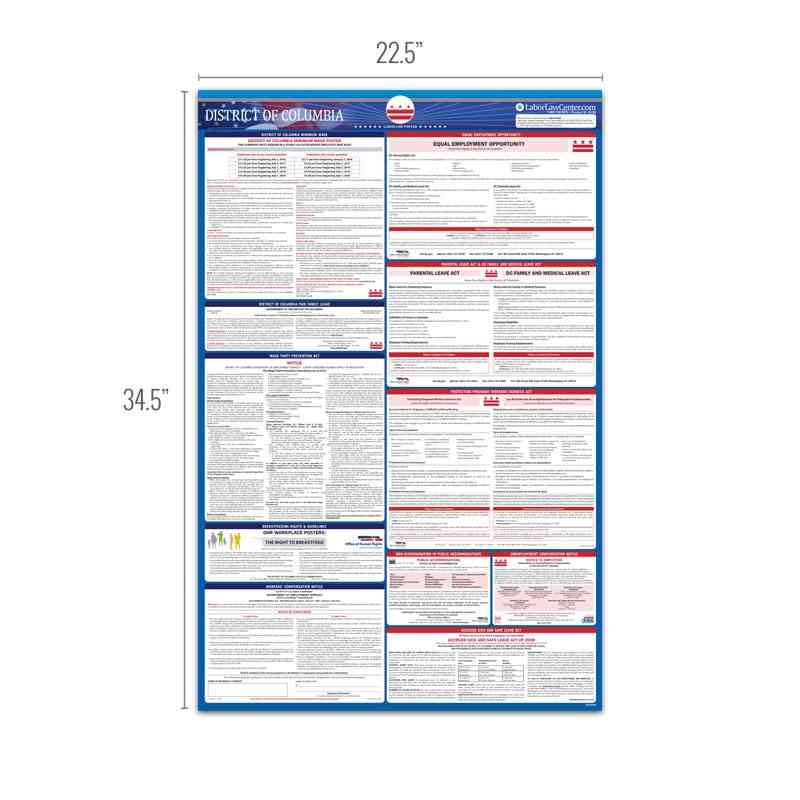 Obtaining the state posting requirements has never been easier with the District of Columbia State only labor law poster. The District of Columbia state only poster has all the state mandated notices required to be posted at the workplace on one convenient poster. Save valuable employee time and money by simply indicating your quantity and version. All posters are conveniently offered in English and Spanish.