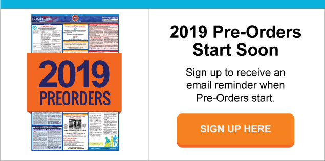 What are the Benefits of Pre-Ordering?The primary benefit of pre-ordering is ensuring that your 2019 labor law poster is taken care of and will be on its way as soon as the poster is released.