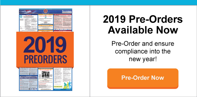 As a business owner, there’s a lot on your plate, including the task of pre-ordering your 2019 labor law posters so sign up to today to receive an email notification as soon as you can pre-order the 2019 labor law posters. Once you do so, you can be rest assured that the required posters will arrive by mail as soon as updates are released by the Department of Labor. Labor Law Posters often update at the beginning of the year which impose mandatory requirements on business owners to replace posters.