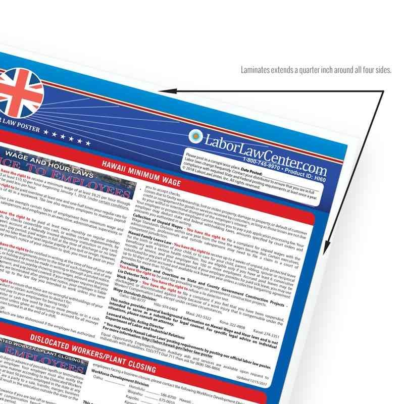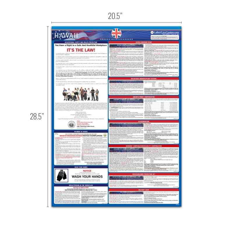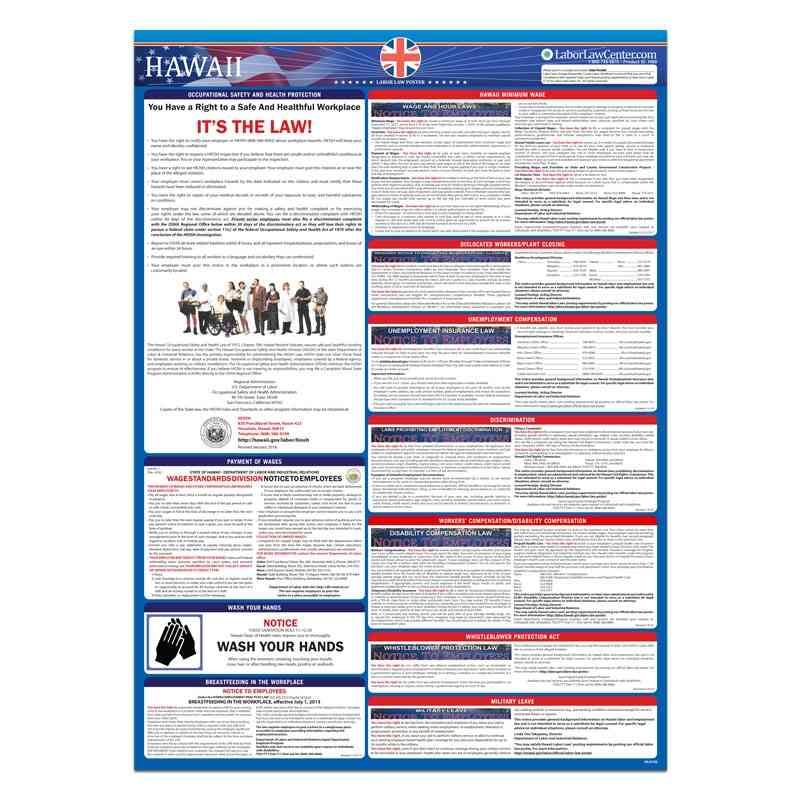Looking for a single poster that includes all mandatory regulations? Consider our Hawaii Complete Labor Law Poster. This oversized poster includes all state, federal, and OSHA requirements on single poster for $29.95. This poster is typically attractive to businesses who just want everything on one poster, rather than purchasing multiple posters to meet compliance requirements.