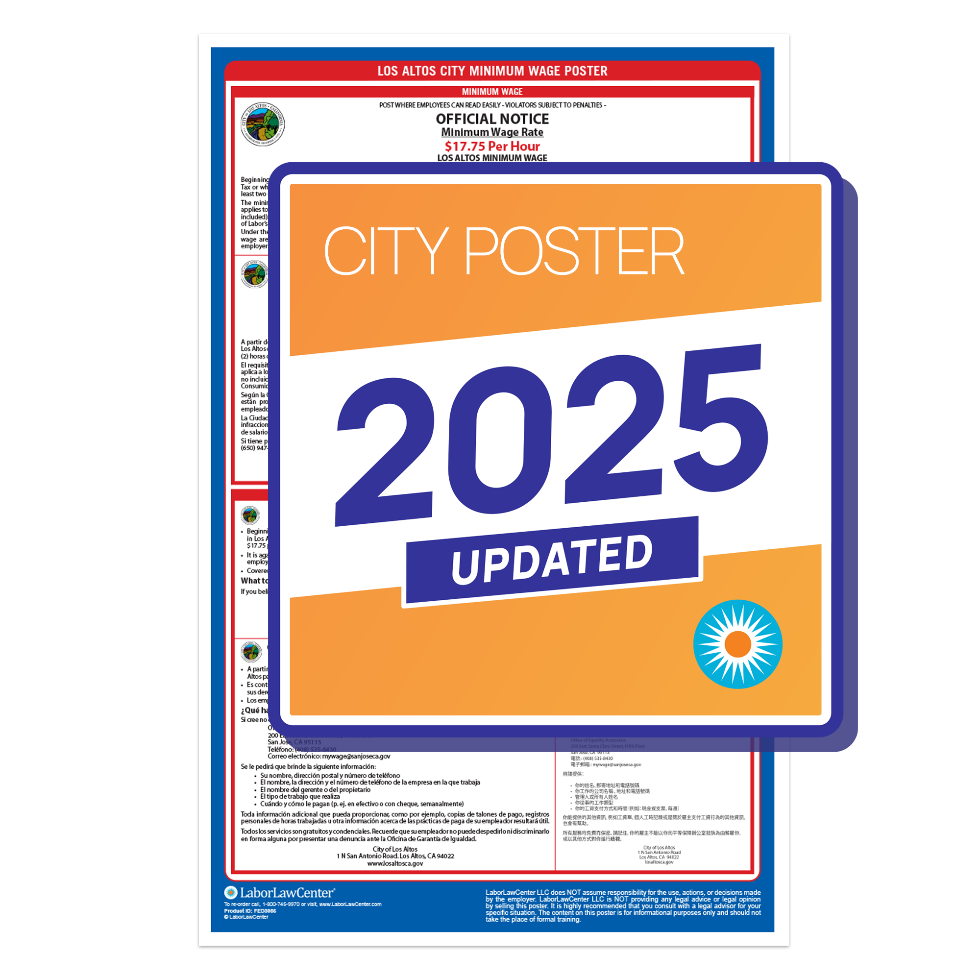 All businesses with employees in Los Altos, CA are legally required to post this city mandated poster in addition to California State & Federal Labor Law Posters. This poster meets requirements & protects businesses from posting fines & employee disputes.