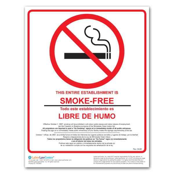 Minnesota's Clean Indoor Air Act was enacted on October 1, 2007 in order to ensure that employees do not smoke in the workplace. Employers should post no smoking signs throughout the workplace in order to ensure that employees understand the regulations of the Clean Indoor Air Act.