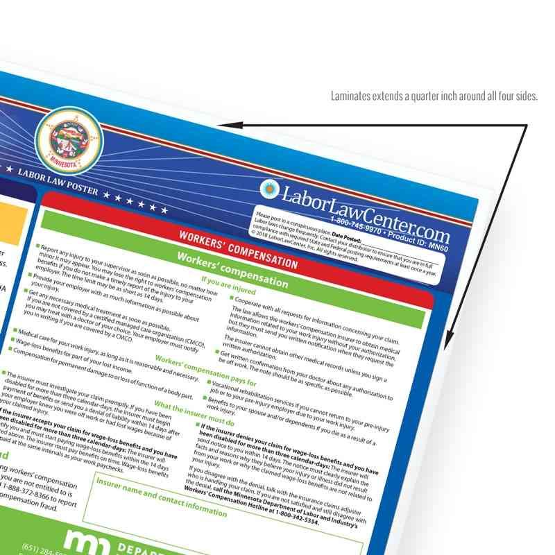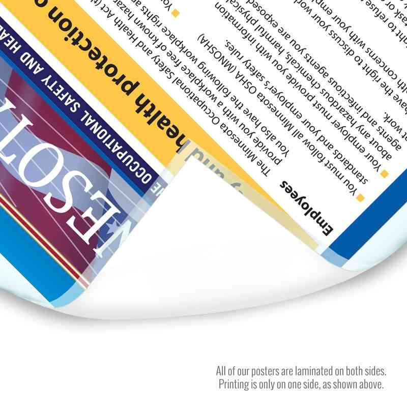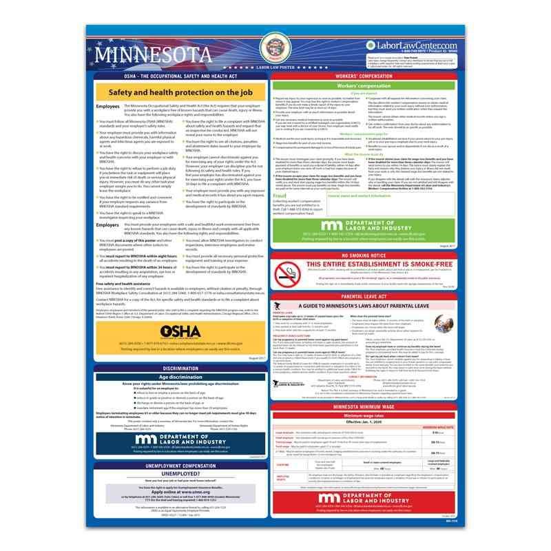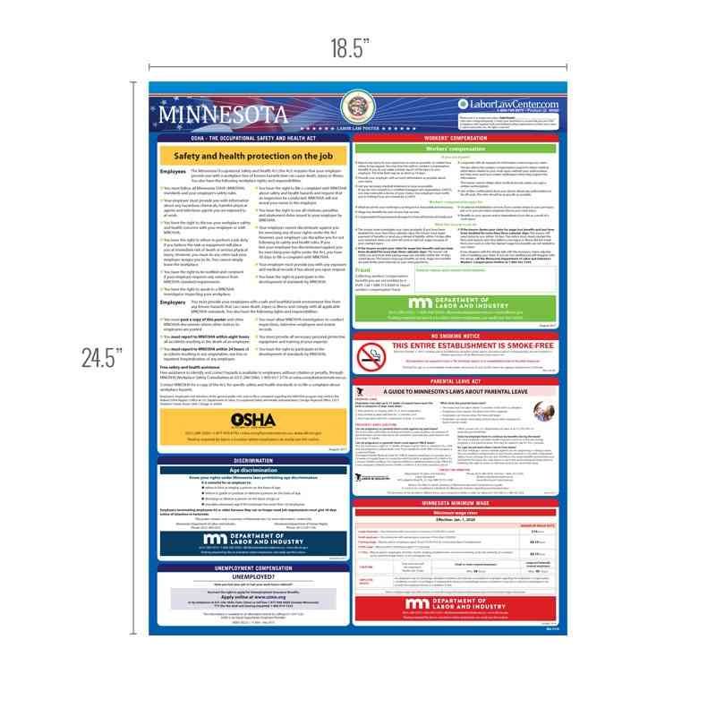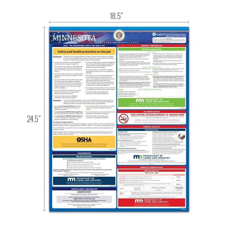 Looking for a single poster that includes all mandatory regulations? Consider our Minnesota Complete Labor Law Poster. This oversized poster includes all state, federal, and OSHA requirements on single poster for $29.95. This poster is typically attractive to businesses that just want everything on one poster, rather than purchasing multiple posters to meet compliance requirements.