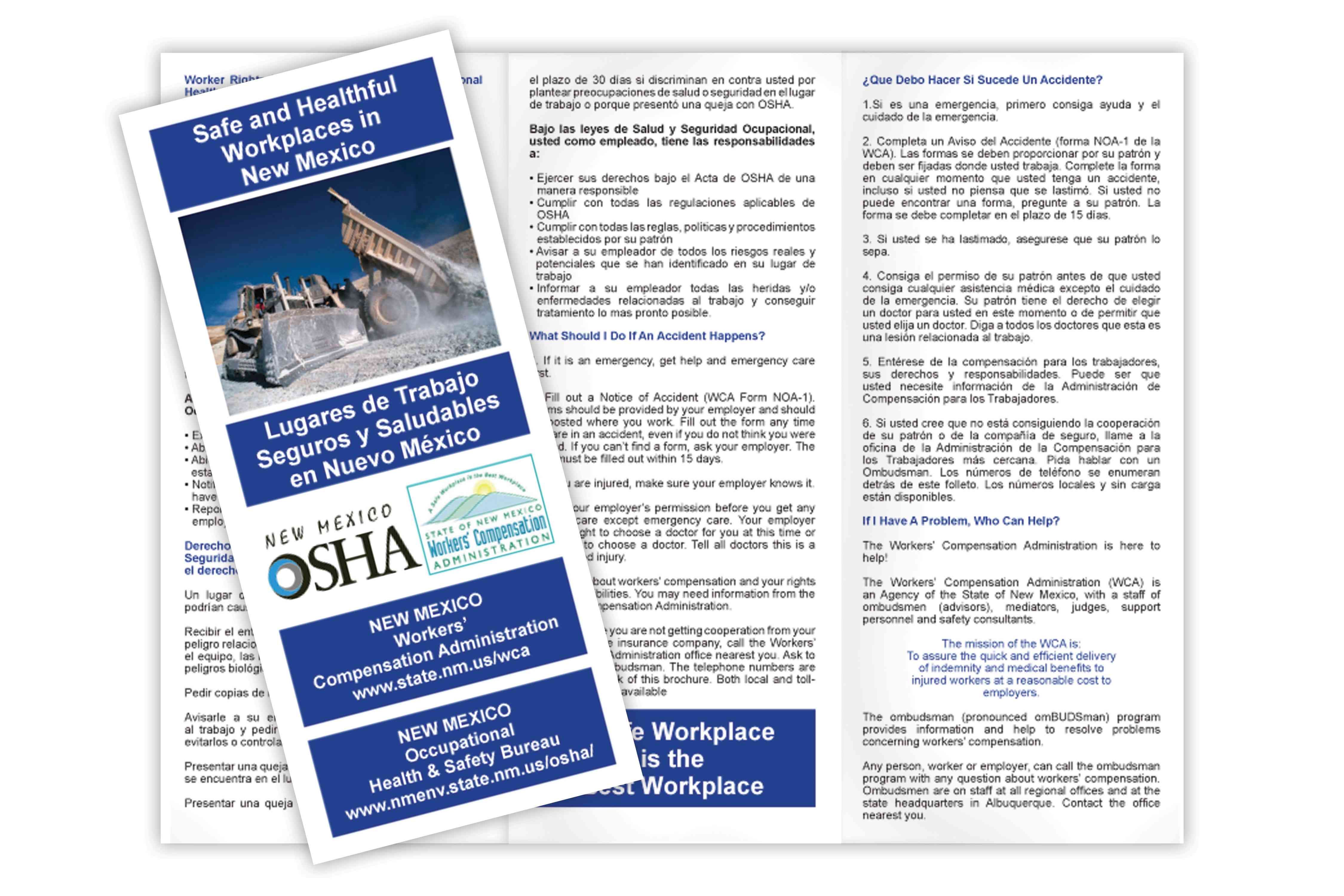 This New Mexico OSHA pamphlet package comes with 25 3-fold pamphlets that should be distributed to employees and made available for employees to review when requested.