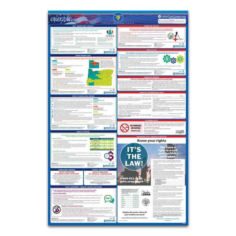 Looking for a single poster that includes all mandatory regulations? Consider our Oregon Complete Labor Law Poster. This oversized poster includes all state, federal, and OSHA requirements on single poster for $29.95. This poster is typically attractive to businesses that just want everything on one poster, rather than purchasing multiple posters to meet compliance requirements.