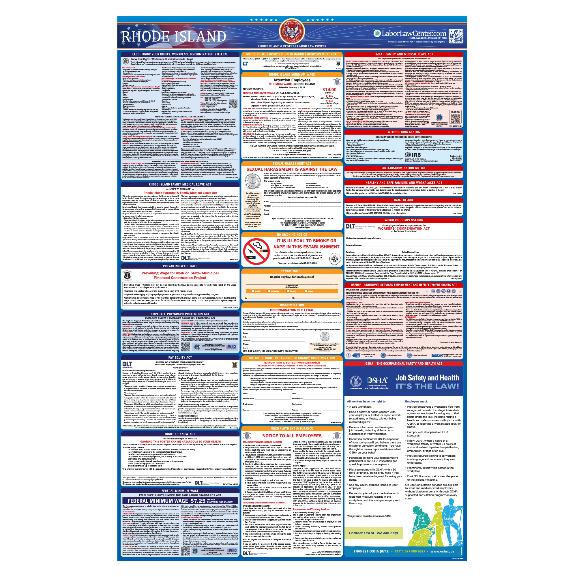 Every Rhode Island business must display state, federal & OSHA notices. This poster is updated for 2023 and meets all labor law compliance requirements.