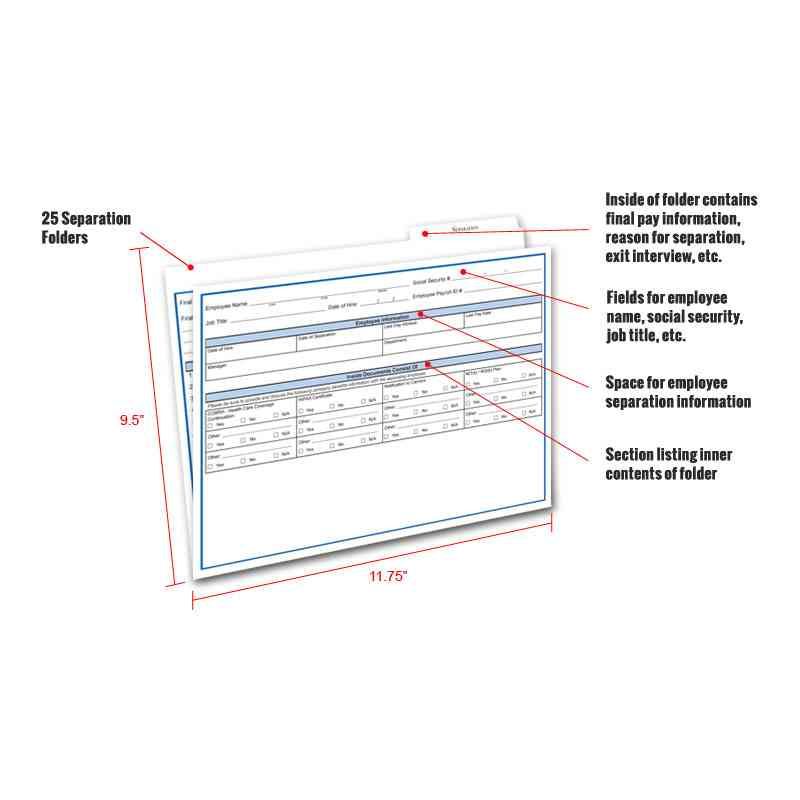 Employers should maintain detailed records for all of their current and past employees. The Separation Folder helps employers keep track of files relating to an employee’s separation. This folder may contain information about an employee’s last day, benefits, reasons for separation, and more.