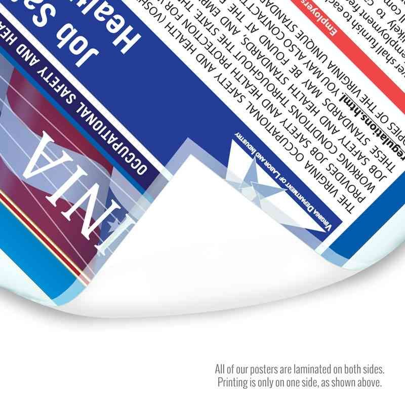 Both Virginia and the federal government require that you post both state and federal posters. For your convenience and preference, we currently offer both formats to assist you with your compliance needs. Posters are typically purchased separately (state and federal) due to a business’ preference, or if size doesn't permit, a single Complete poster that may be larger. We are the industry’s leading company that can provide you with either option including: the Virginia State Only Labor Law Poster, which includes all mandatory state requirements on a single poster for $21.95, and the mandatory Federal Poster for $12.95, which you can add to your order in the purchasing options above. For your convenience, we offer both formats.