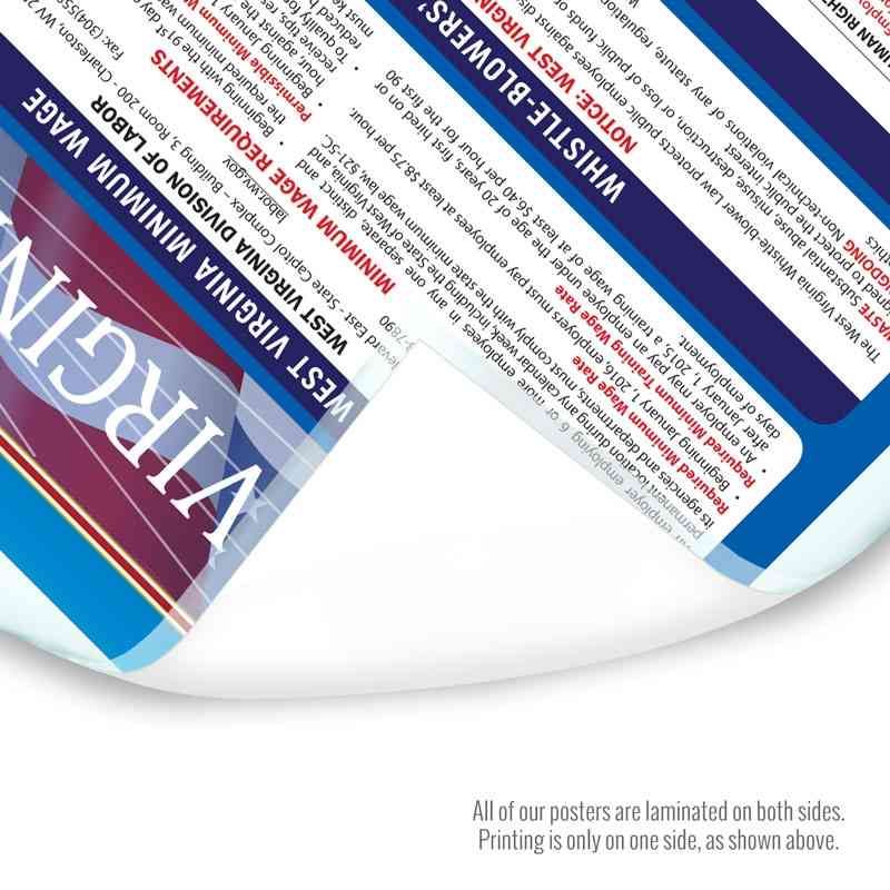 Obtaining the state posting requirements has never been easier with the West Virginia State only labor law poster. The West Virginia state only poster has all the state mandated notices required to be posted at the workplace on one convenient poster. Save valuable employee time and money by simply indicating your quantity and version. All posters are conveniently offered in English and Spanish.