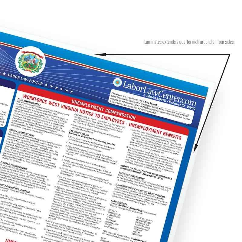 Looking for a single poster that includes all mandatory regulations? Consider our West Virginia Complete Labor Law Poster. This oversized poster includes all state, federal, and OSHA requirements on single poster for $29.95. This poster is typically attractive to businesses that just want everything on one poster, rather than purchasing multiple posters to meet compliance requirements.
