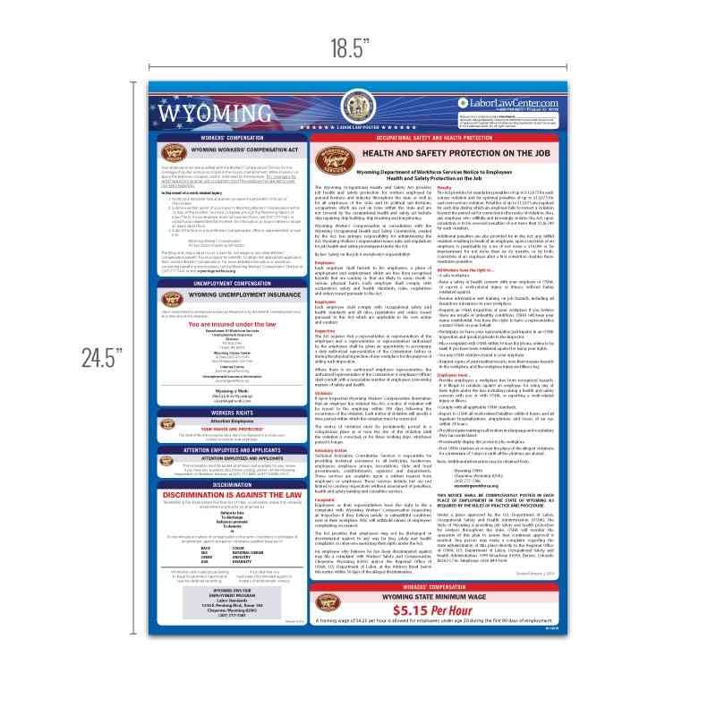 Looking for a single poster that includes all mandatory regulations? Consider our Wyoming Complete Labor Law Poster. This oversized poster includes all state, federal, and OSHA requirements on single poster for $29.95. This poster is typically attractive to businesses that just want everything on one poster, rather than purchasing multiple posters to meet compliance requirements.